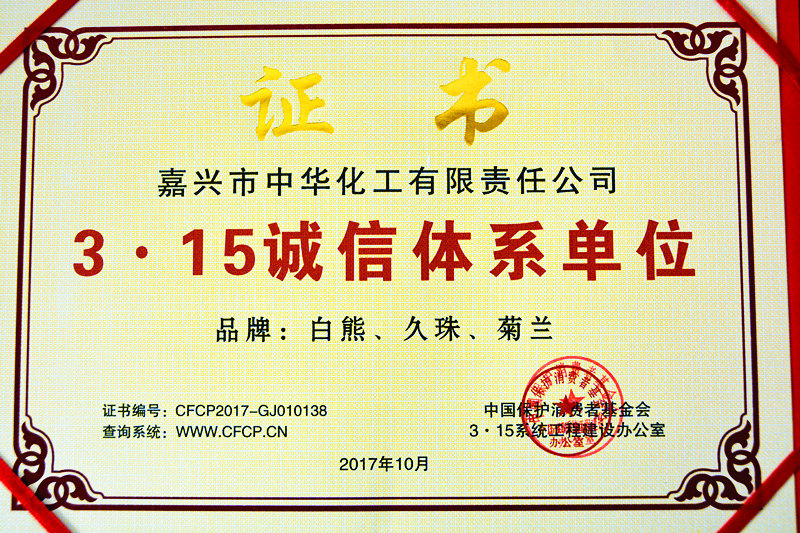 為貫徹落實黨和政府關(guān)于建立健全社會征信體系,褒揚誠信,懲戒失信和建立營造良好的法制環(huán)境,增強社會消費信心,中國保護消費者基金會根據(jù)《消費者權(quán)益保護法》所賦予消費者組織的工作職能,開展了推進3.15系統(tǒng)工程,發(fā)展維護消費者權(quán)益“3.15誠信體系單位”征信“放心消費(準(zhǔn)入)品牌/產(chǎn)品”專題活動。在本次評選活動中,我公司喜獲“3.15誠信體系單位”榮譽稱號;白熊、久珠、菊蘭牌香蘭素、乙基香蘭素榮膺“放心消費(準(zhǔn)入)品牌/產(chǎn)品”榮譽稱號。