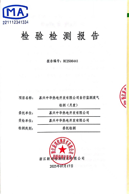 • 中華熱電7月廢氣檢測(cè)報(bào)告