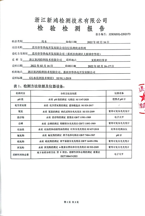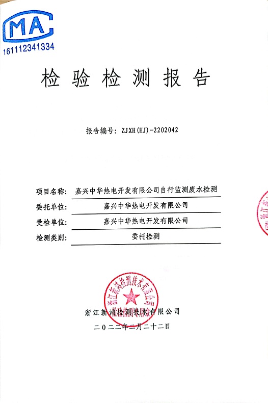 報(bào)告名稱:中華熱電2022.2月廢水檢測(cè)報(bào)告