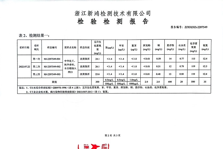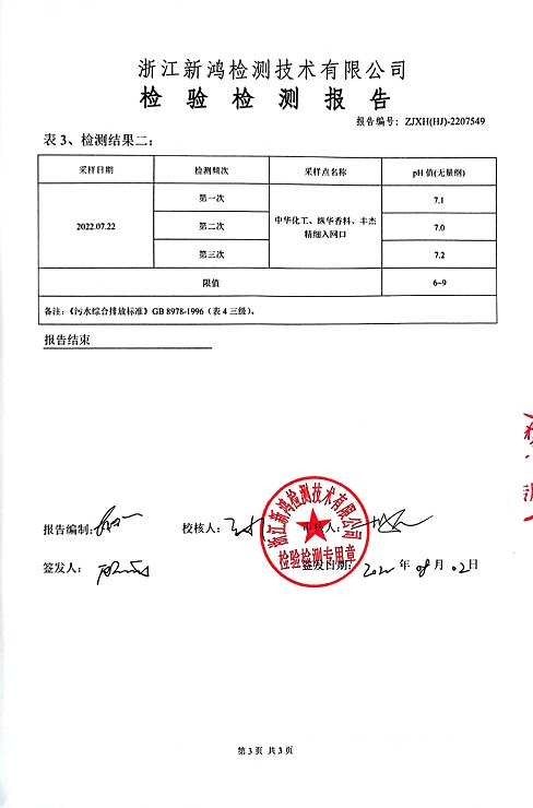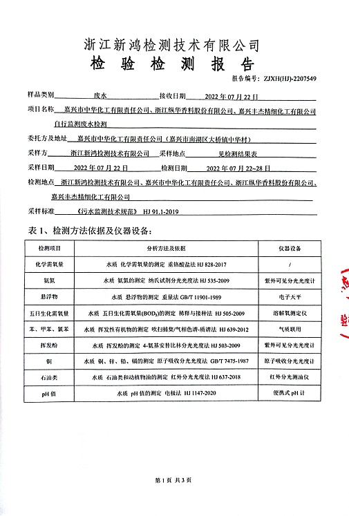 報(bào)告名稱:中華化工、縱華、豐杰2022年3季度廢水檢測(cè)報(bào)告