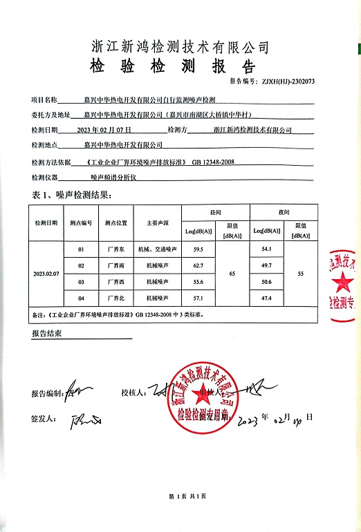 報(bào)告名稱:中華熱電2023年1季度噪聲檢測(cè)報(bào)告