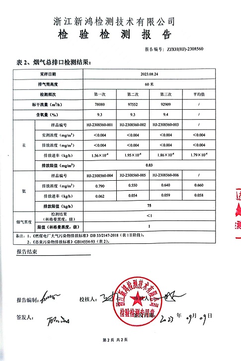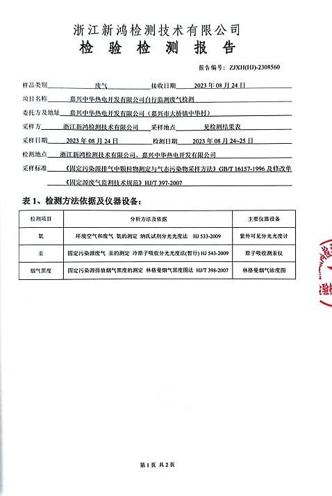 報告名稱:中華熱電2023.8月廢氣檢測報告