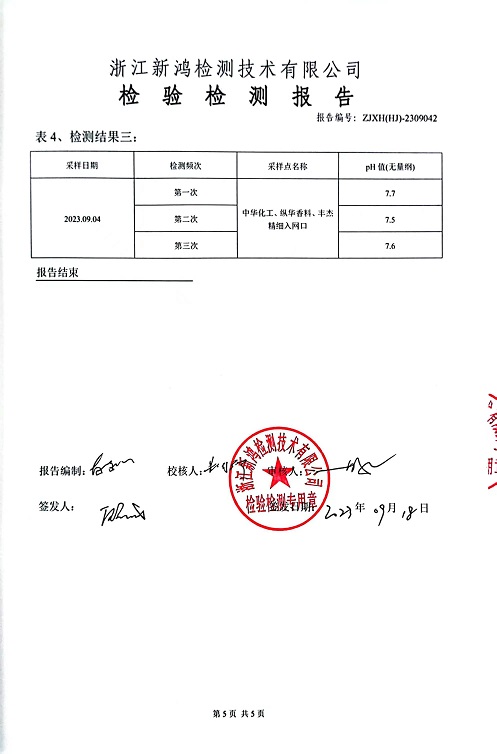 報(bào)告名稱:中華化工、縱華、豐杰2023.3季度廢水檢測(cè)報(bào)告