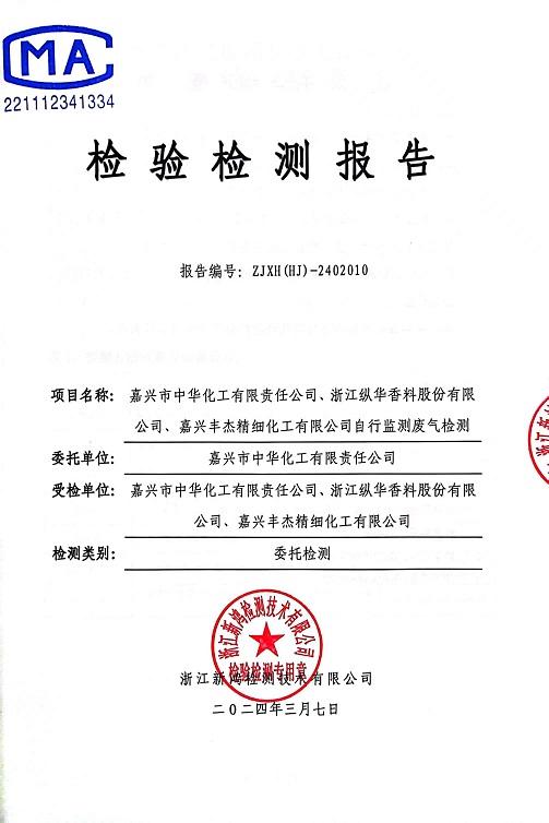 報(bào)告名稱:2024年中華化工1季度廠界檢測(cè)報(bào)告