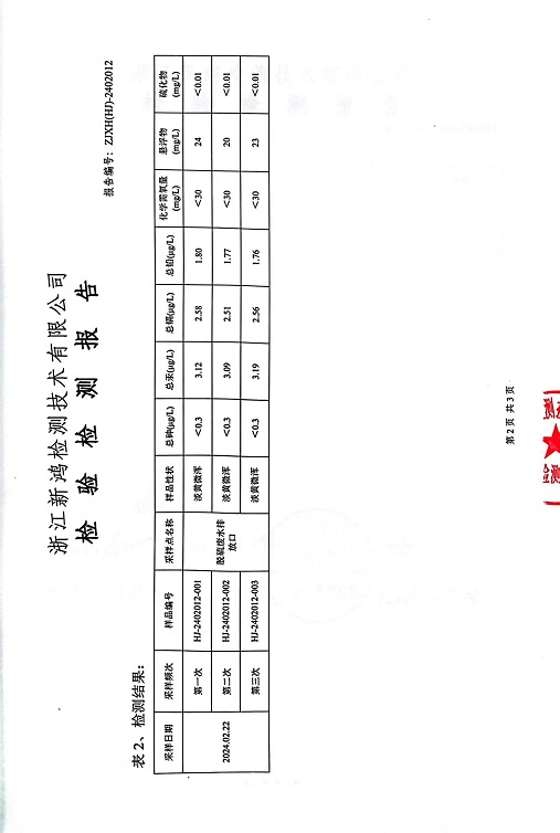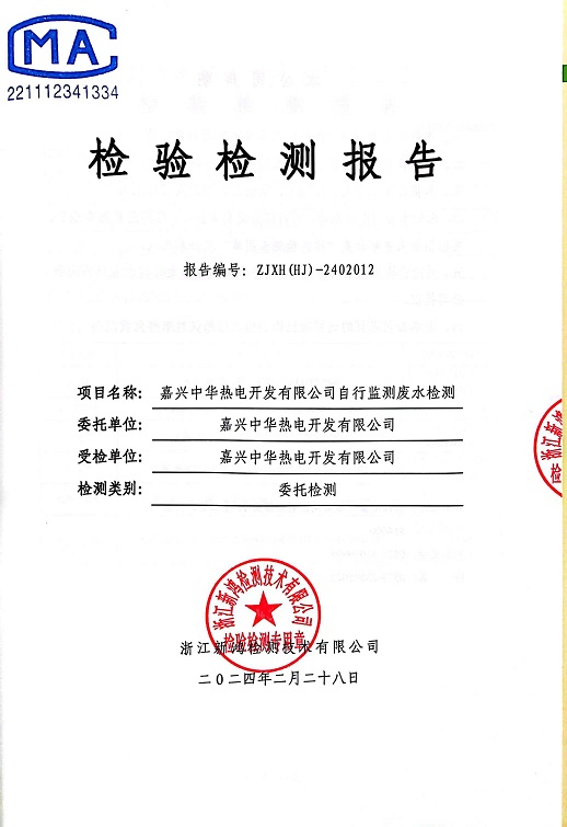 報(bào)告名稱:2024年中華熱電2月廢水檢測(cè)報(bào)告