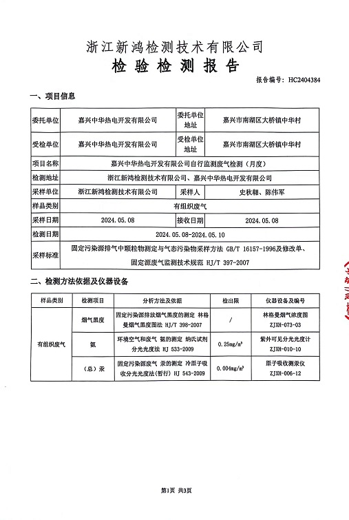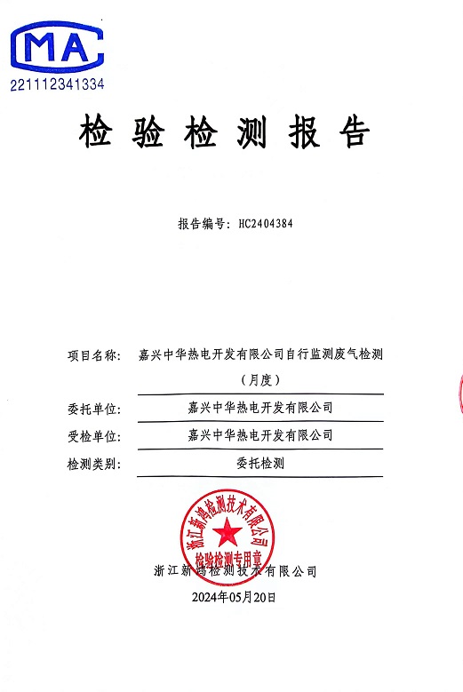 報(bào)告名稱:2024年中華熱電5月廢氣檢測報(bào)告