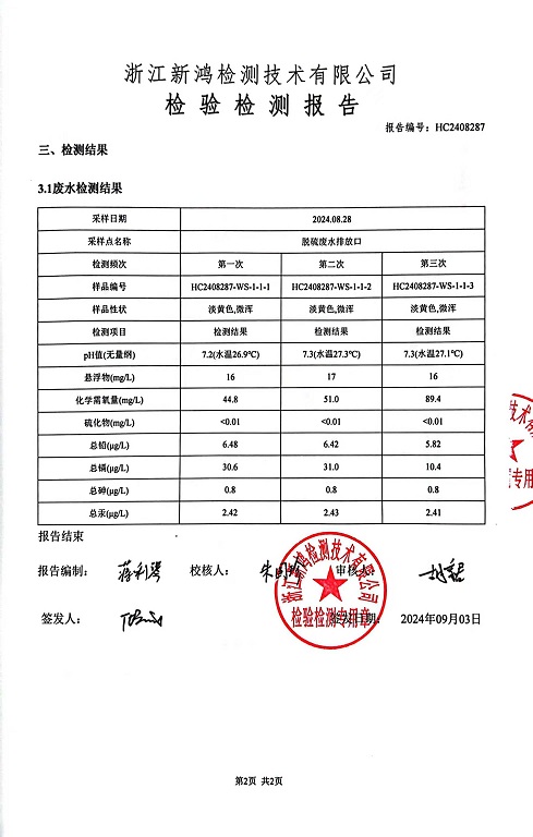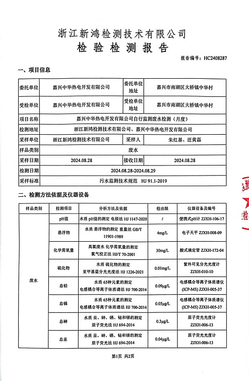 報(bào)告名稱:中華熱電8月廢水檢測(cè)報(bào)告