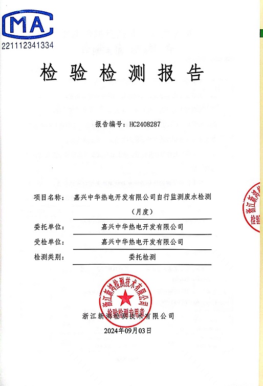 - 中華熱電9月廢水檢測(cè)報(bào)告
