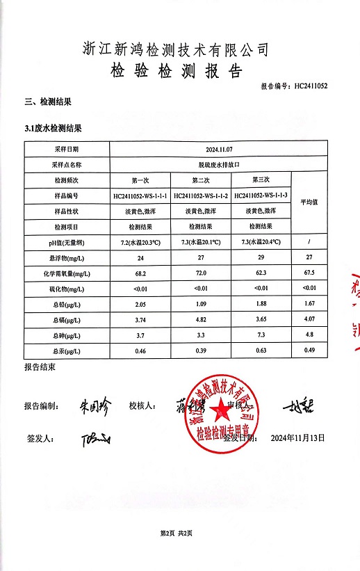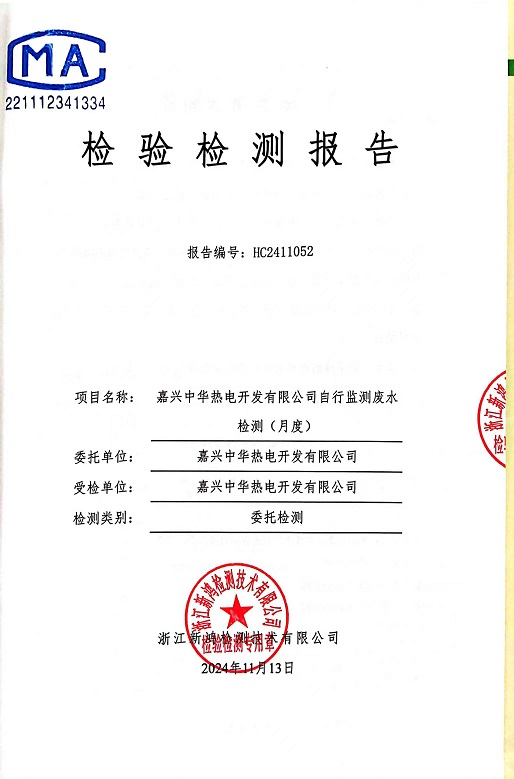 報告名稱:中華熱電11月廢水檢測報告