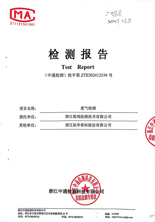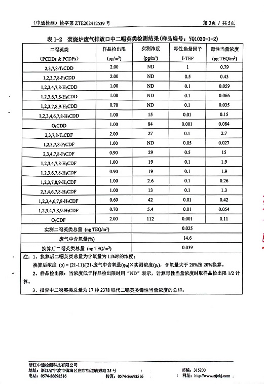 報(bào)告名稱:2024年縱華二噁英下半年檢測報(bào)告