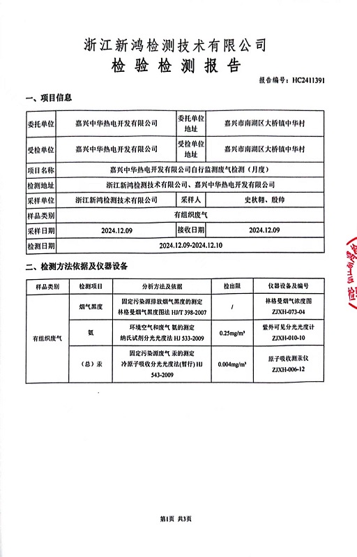 報告名稱:中華熱電12月廢氣檢測報告