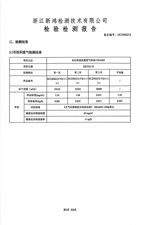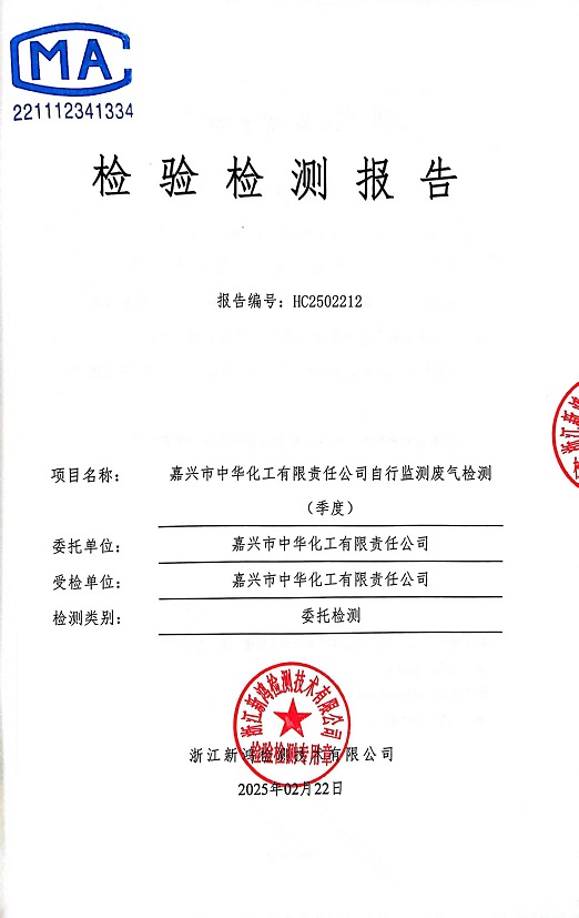 報(bào)告名稱:中華化工2025年1季度廢氣檢測報(bào)告