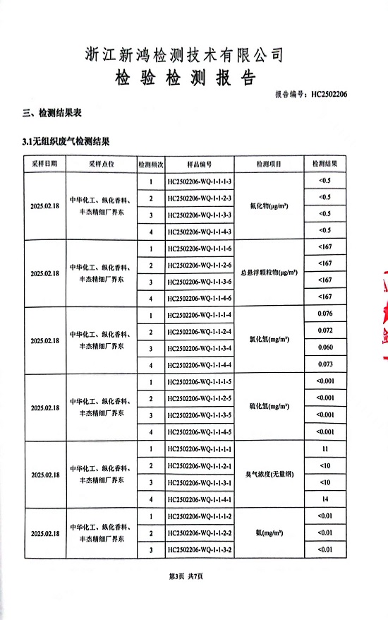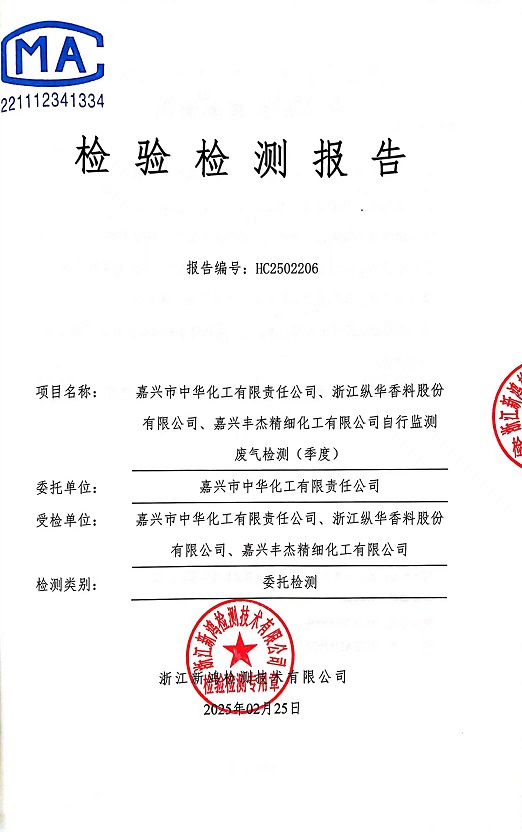 報(bào)告名稱:中華化工、縱華、豐杰2025年1季度廠界檢測(cè)報(bào)告